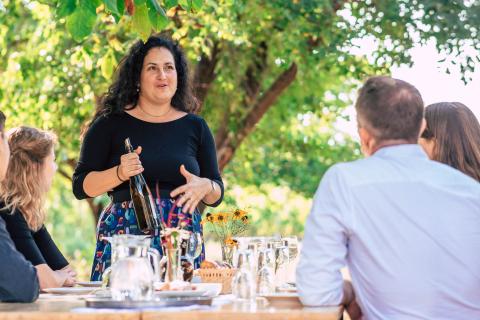 Aki a borkóstolót tartja: Borvák Mária - alapító tulajdonos, a borászat megálmodója, a borok lelkes készítője